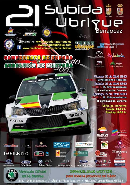 Uno de los eventos deportivos del año en la Sierra de Cádiz es la tradicional Subida Ubrique – Benaocaz. Una prueba puntuable para el Campeonato de España de Montaña y el Campeonato de Andalucía de Montaña que este año celebra su XXI edición. Durante un fin de semana las carreteras de la Sierra de Grazalema se convierten en un circuito y se llenan de aficionados al motor. Los principales pilotos nacionales de montaña no se pierden la Subida Ubrique 2016 porque ya se ha convertido en una prueba referente.
