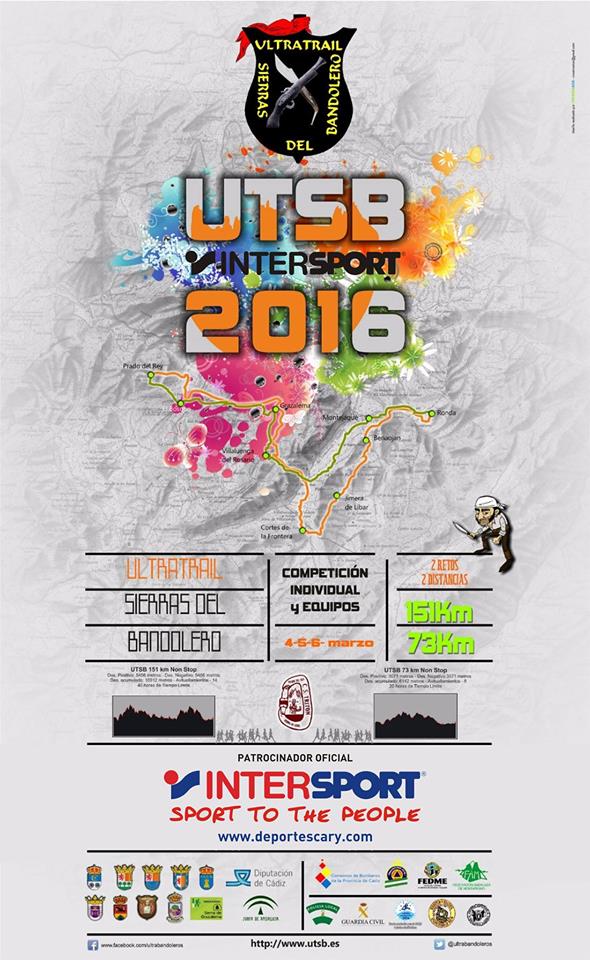 - La Ultra Trail Sierra del Bandolero (UTSB 2016) tiene un recorrido de 155 km con un desnivel acumulado de más de 10.000 metros en positivo que hay que finalizar antes de 40 horas. Todo un reto físico para los deportistas y amantes de la naturaleza que durante día, noche, lluvia y frío no pararán de caminar por la ruta diseñada por la organización.La salida comenzará en Prado del Rey el 4 de marzo a las 18:00h y tomarán camino hacia El Bosque, lugar donde comenzará la subida hasta Llanos del Campo, Puerto del Boyar y Villaluenga del Rosario. Desde aquí subirán hasta Ronda pasando por Puerto del Correo y Montejaque. En la localidad rondeña se realizará el cambio de mochilas y se proseguirá hasta Benaoján, Jimera de Líbar, Cortes de la Frontera y vuelta a Villaluenga del Rosario. En este punto se volverá a recoger la segunda mochila y se iniciará la vuelta hacia la meta en Prado del Rey a travesando Grazalema, Puerto del Boyar, Benamahoma y El Bosque. El cierre de meta será el día 6 de marzo a las 10:00h.